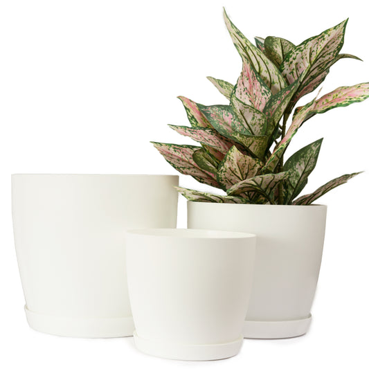 Plant Pots Indoor Matte Set of 3 Sizes 20/25/30cm – Large Plant Pot with Plant Saucer
